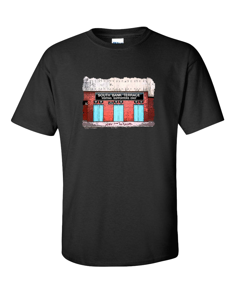 This T-Shirt has an image of the south Bank away supporters entrance printed to the chest. Visiting fans would think they were almost safe after the intimidating walk from Upton Park station.