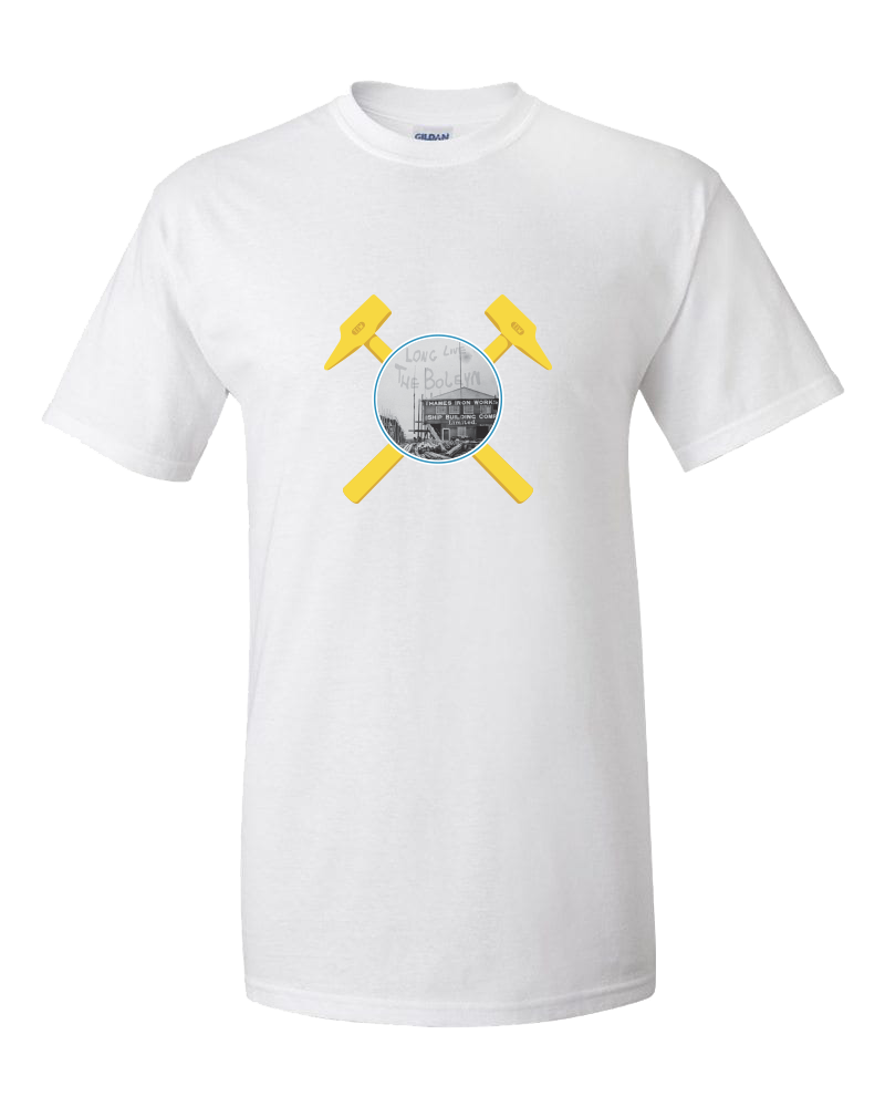 A white t-shirt with 'Long Live The Boleyn' screen printed in claret and blue to the chest.