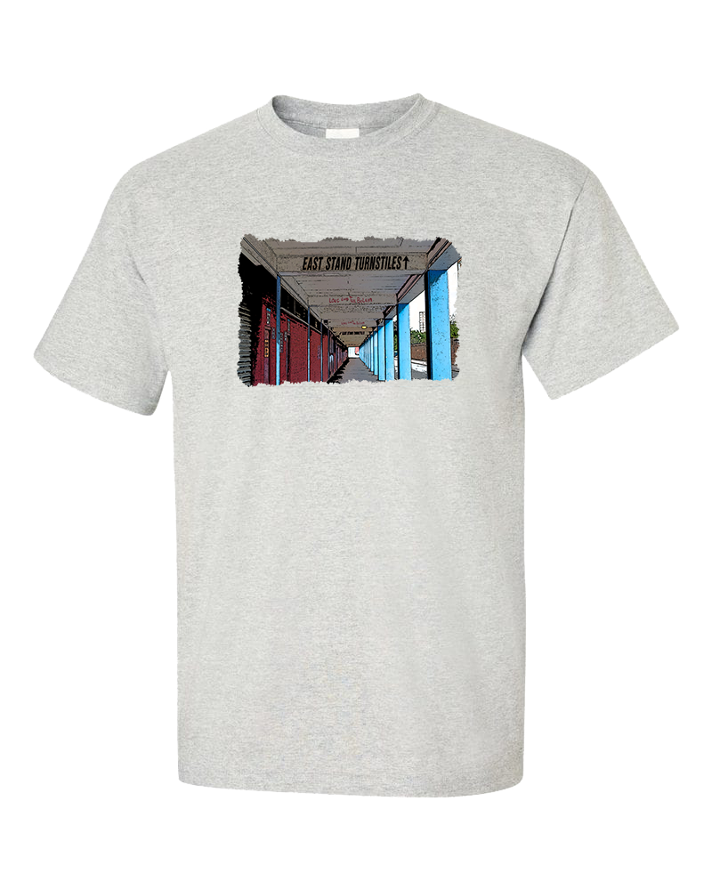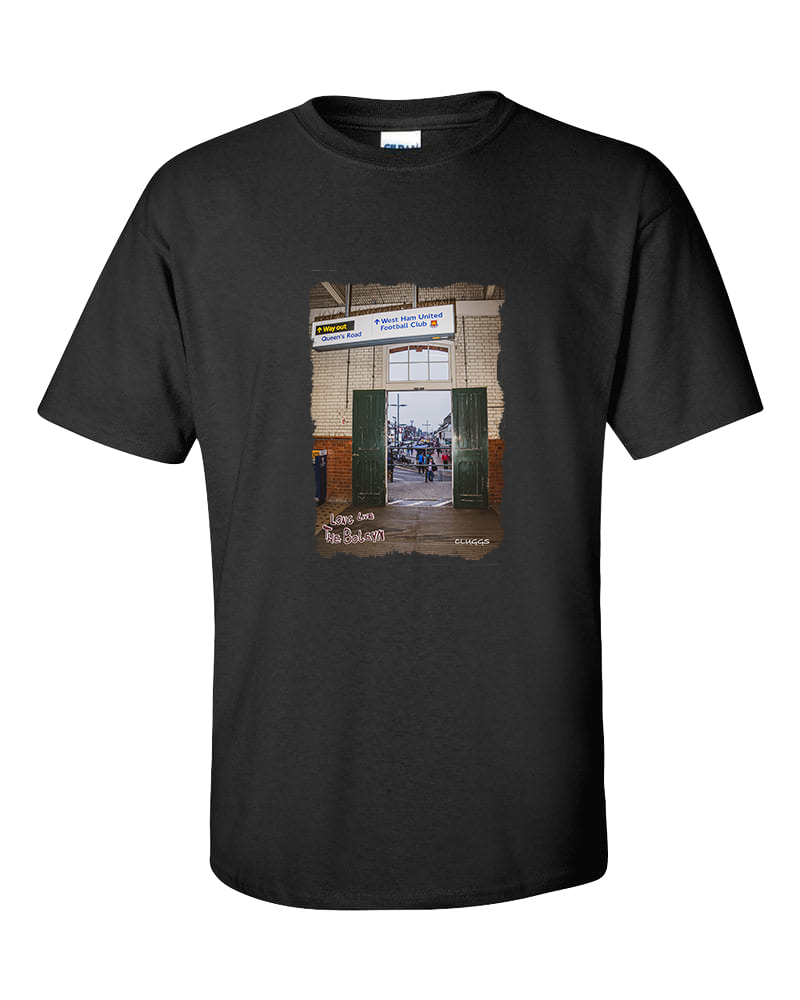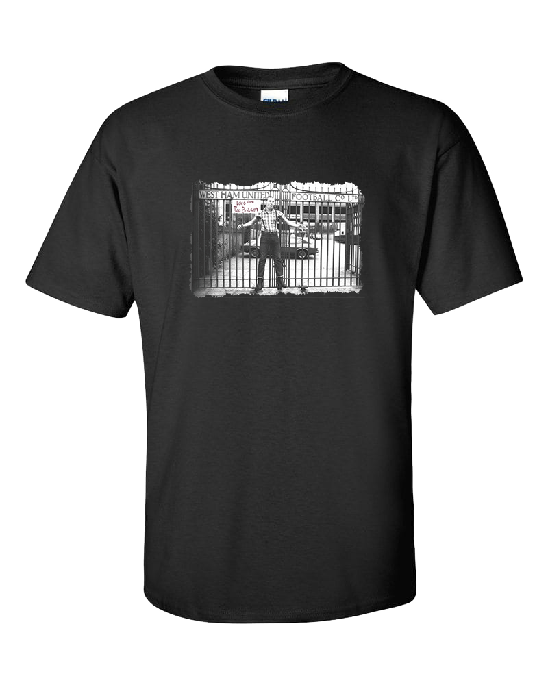 This T-Shirt has an image of the south Bank away supporters entrance printed to the chest. Visiting fans would think they were almost safe after the intimidating walk from Upton Park station.