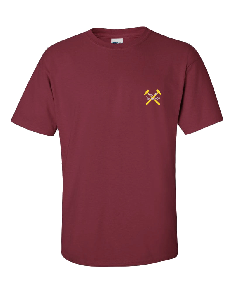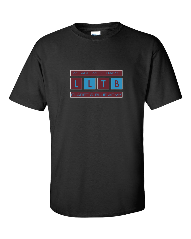 A slightly more understated look on this t-shirt with the LLTB logo on top of the hammers printed on the left breast of the shirt.