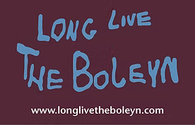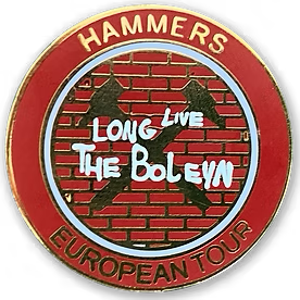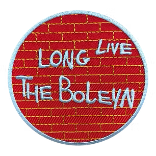 80mm diameter iron on patch with 'Long Live The Boleyn' in blue on a brick wall background.