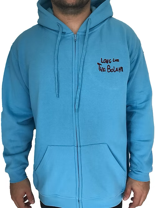 Zip-Up HoodieDescription -A blue hoodie with ‘Long Live The Boleyn' embroidered in claret to the breast.£14.00
